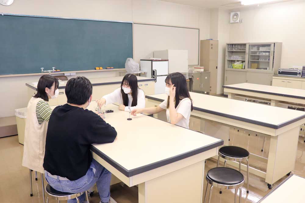 微生物学で細菌培養実験、解剖生理学でかえるの解剖を行っています。